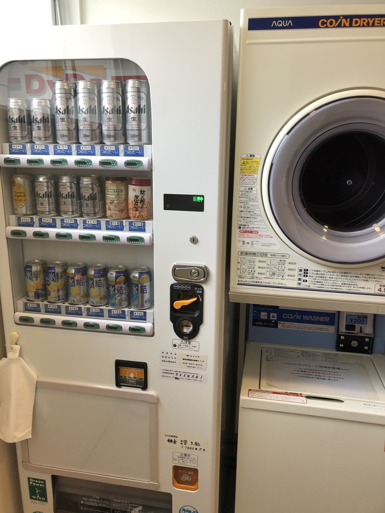 Since the dryers here aren’t quite up to American standards and I’m too stubborn to break my load into 2 different smaller loads, I knew it’d take quite some time to dry everything. I was feeling more confident with the machines in Japan as I had also done a quick load at a previous hotel in Tokyo. The only issue was that the previous hotel had a lot of instructions in English while this one had absolutely no English instructions… I also noted that the previous hotel had the detergent included in it (you didn’t add your own – just coins and go!). Let alone the inability to understand how to work the machine, they conveniently located a beer vending machine next to the laundry which was beginning to tempt me in my frustrations.